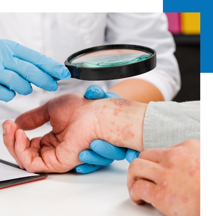 Our medical professionals will do a medical examination and inquire about your symptoms in order to get a diagnosis of a skin infection. You may have to go through certain laboratory testing, like a skin culture. A sample taken from your skin will be analysed in order to determine the specific kind of illness that you have. We could collect a sample of your skin by swabbing it, scraping it, or cutting off a very little portion of your skin (for biopsy). Other types of examinations, such as blood tests, are used on occasion.
